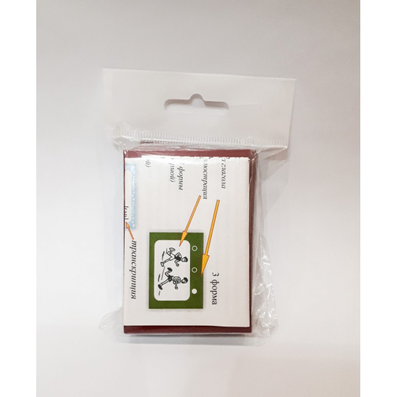 В набор входит 23 глагола. 20 глаголов представлены в трех формах, каждая форма на отдельной карте. 3 глагола представлены только в одной форме на одной карте, т.к. все три формы у этих глаголов совпадают. Наборы составлялись с учетом частоты использования глаголов в английском языке и лексики в рамках школьной программы.